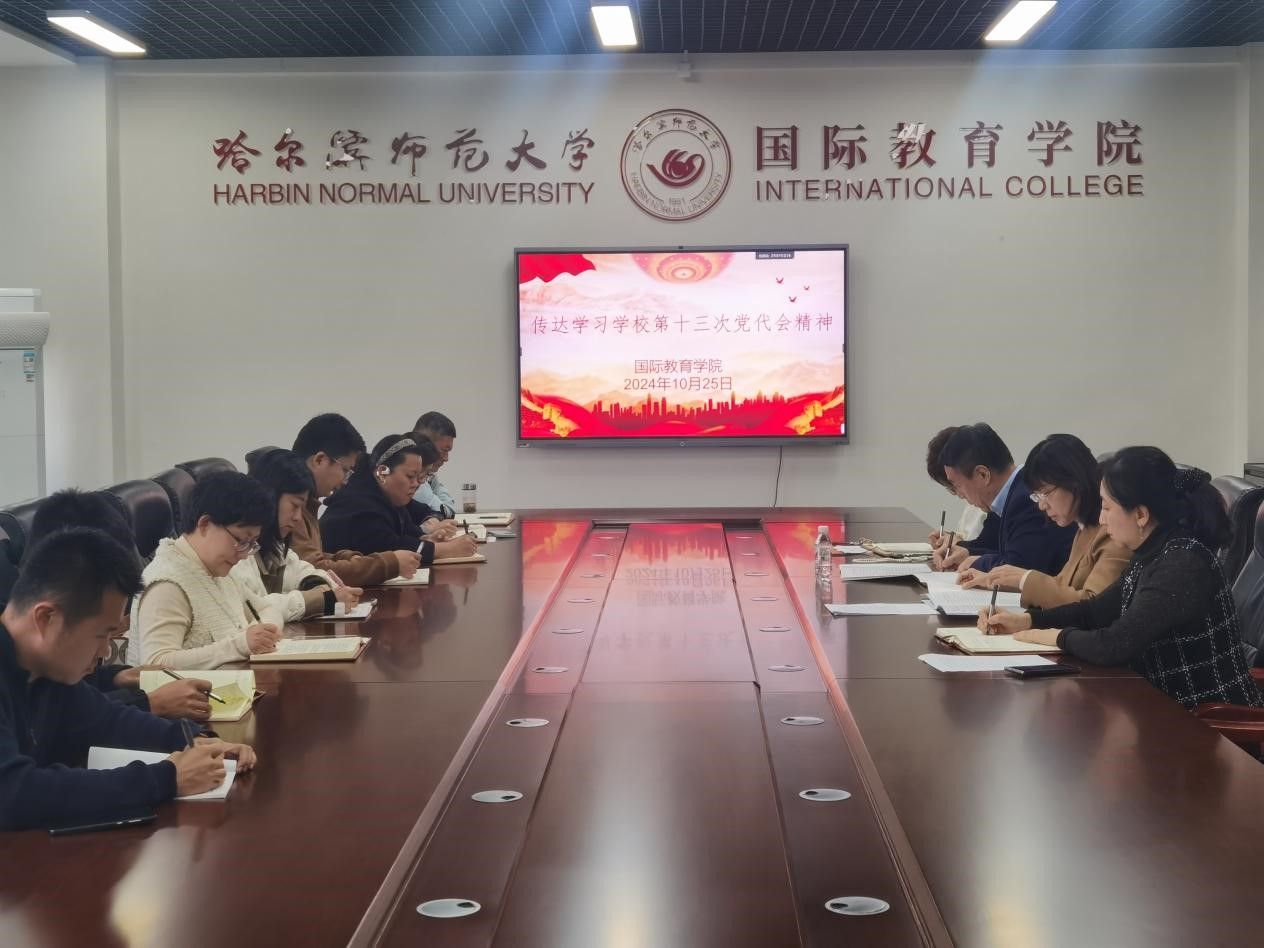 10月25日下午,国际教育学院在国际楼513会议室召开专题会议,传达学习中国共产党哈尔滨师范大学第十三次党员代表大会精神。学院党委书记李丹妍主持会议并领学党代会报告,学院党委班子成员、党支部书记、辅导员、...