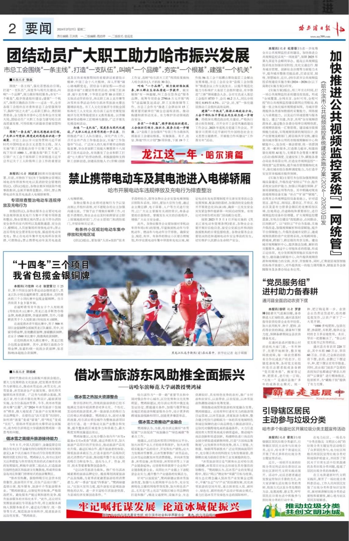 新时代推动东北全面振兴座谈会提出,要大力发展特色文化旅游,把发展冰雪经济作为新增长点,推动冰雪运动、冰雪文化、冰雪装备、冰雪旅游全产业链发展。依托得天独厚的冰雪资源、广泛参与的群众基础,黑龙江省、哈尔滨市强化统筹设计,超前谋划实施,全方位备战冰雪季。今冬,我市冰雪旅游火爆“出圈”,居“2024年冰雪旅游十佳城市”榜首,极大地促进了旅游产业发展和城市品牌提升。在接住这“泼天富贵”的同时,如何将“流量”变成“留量”、将“网红”变成“长红”,借助冰雪旅游的火爆带动全面振兴,成为哈尔滨师范大学副教授樊鸿禄一直思考的问题。