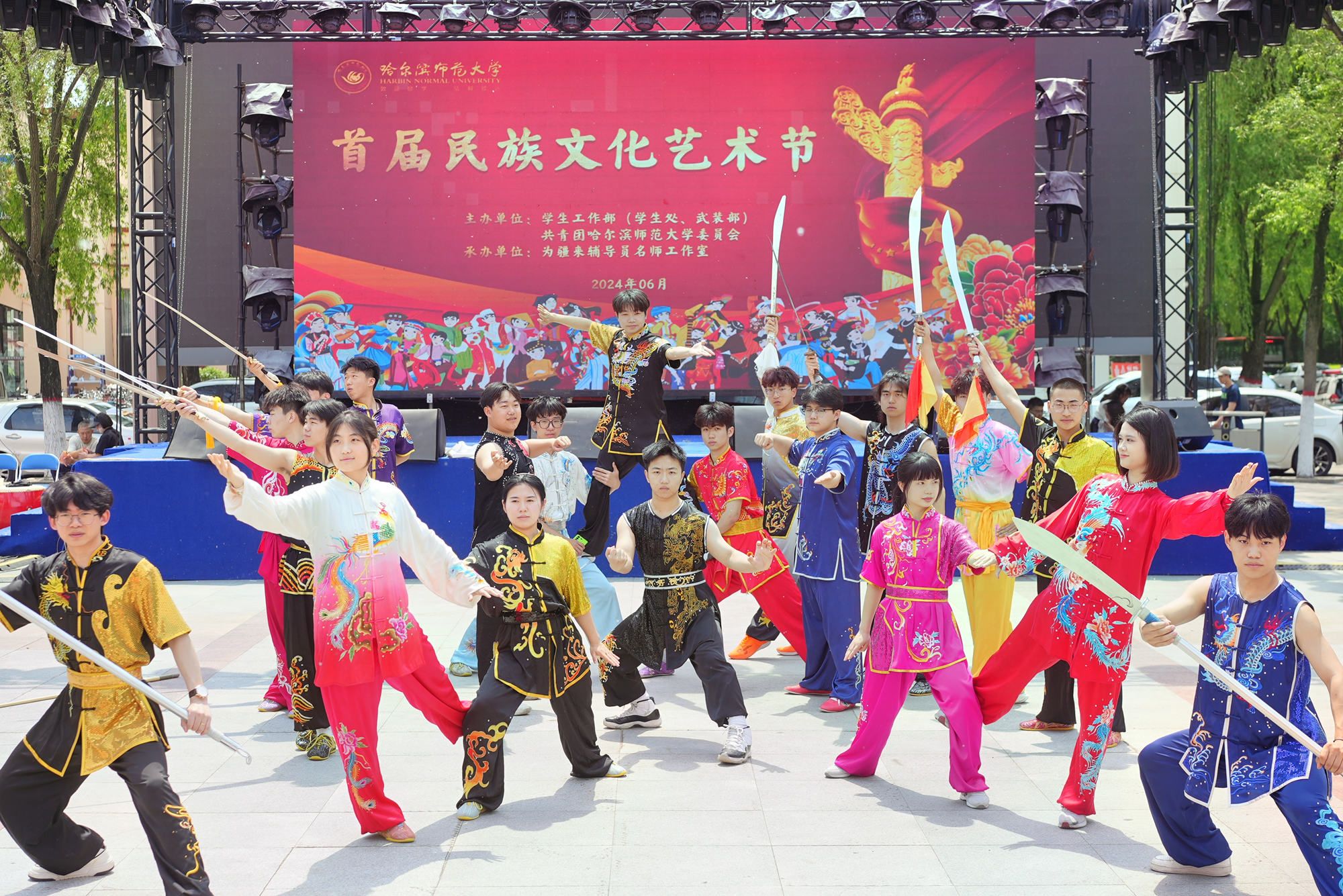 為不斷推動以中華優秀傳統文化為引領,促進學校各民族學生的交往交流交融,堅持不懈以生動活潑的形式將鑄牢中華民族共同體意識潤化於心,我校於6月5日在哈爾濱市松北校區楓葉廣場舉辦首屆大學生民族文化藝術節。校黨委副書記、工會主席郭礫,黨委常委、統戰部部長張志宏,黨委常委、宣傳部部長張艷君出席活動。機關各職能部門負責同志,各學院黨委副書記、輔導員及5000餘名師生參加了活動。