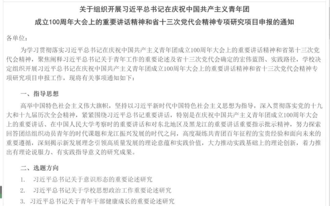 (毕坤/文)为深入学习宣传贯彻习近平总书记在庆祝中国共产主义青年团成立100周年大会上的重要讲话精神和黑龙江省第十三次党代会精神,按照《省委教育工委关于在全省高校组织开展省第十三次党代会精神学习宣传“十个...