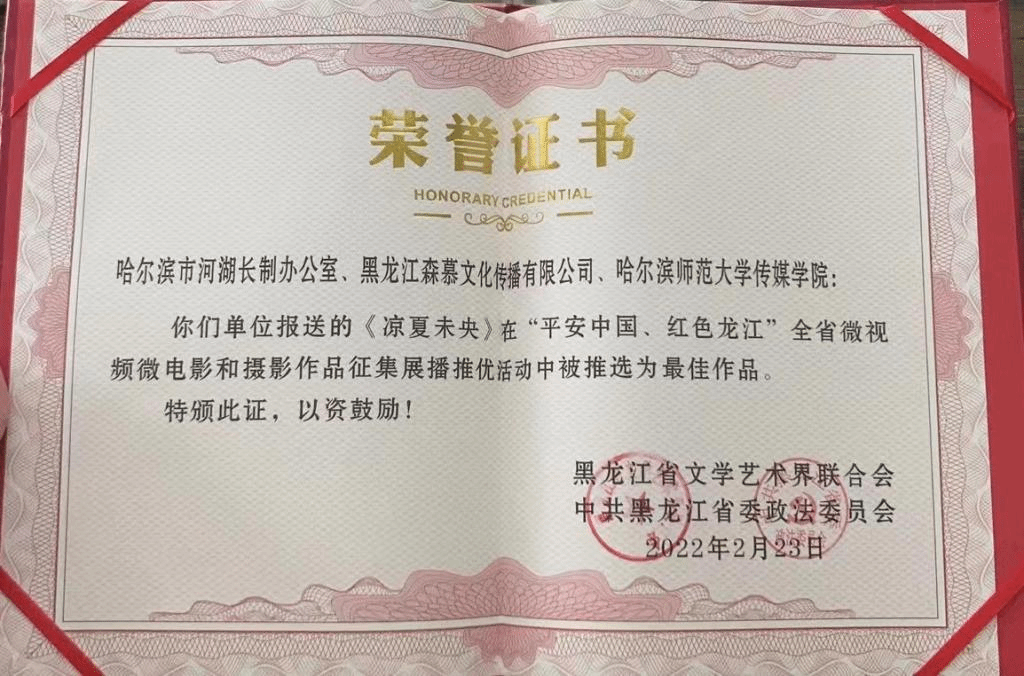 (李家兴/文)近日,由黑龙江省文联、中共黑龙江省委政法委主办的“平安中国、红色龙江”全省微视频微电影和摄影作品征集展播评选活动成绩揭晓,我校传媒学院教师裴佳兴担任编剧、徐龙稷担任导演,教师郝树国、李贵龙...