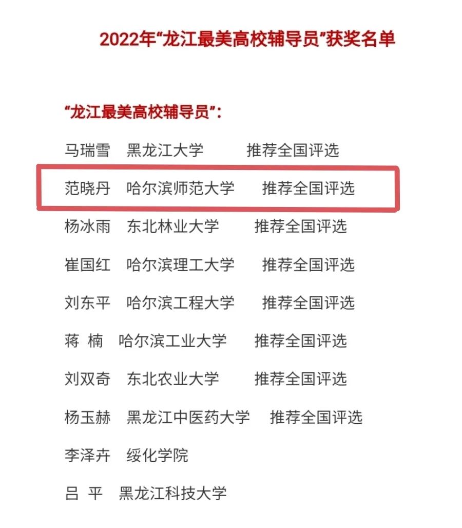 (曹傲然/文)近日,2022年“龙江最美高校辅导员”推选展示活动落下帷幕。