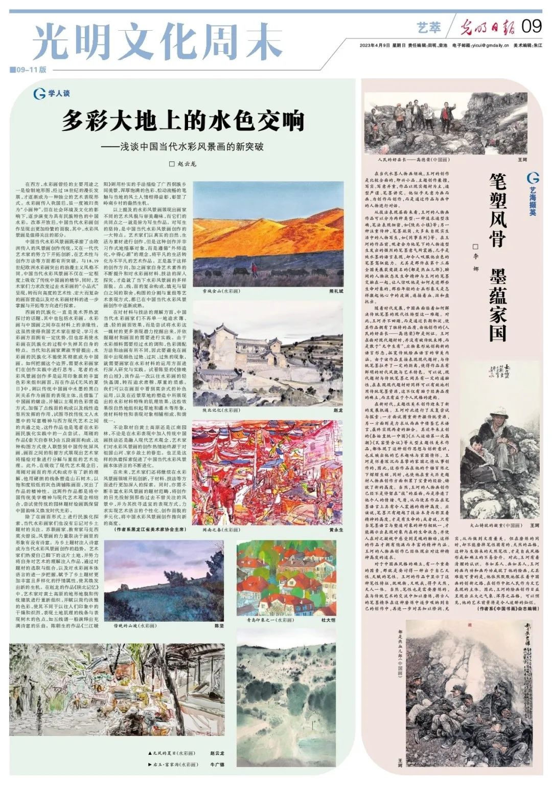 4月9日,《光明日报》刊发省美术家协会主席、我校美术学院院长赵云龙署名文章《多彩大地上的水色交响——浅谈中国当代水彩风景画的新突破》。