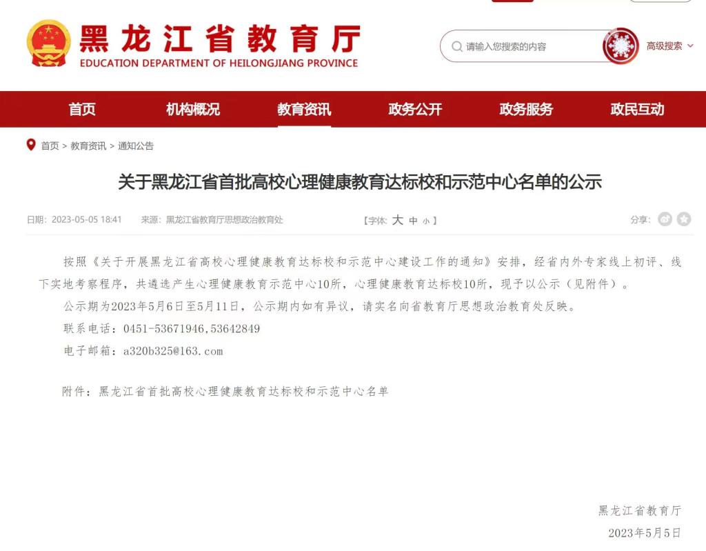 日前,省教育厅发布了《关于黑龙江省首批高校心理健康教育达标校和示范中心名单的公示》,评选产生黑龙江省首批“高校心理健康教育示范中心”10所、“高校心理健康教育达标校”10所。我校学生工作部(学生处、武装部)心理健康教育中心获得黑龙江省首批“高校心理健康教育示范中心”荣誉称号。近年来,我校党委高度重视大学生心理健康教育,深入贯彻落实习近平总书记关于学生心理健康教育的系列重要指示批示,...