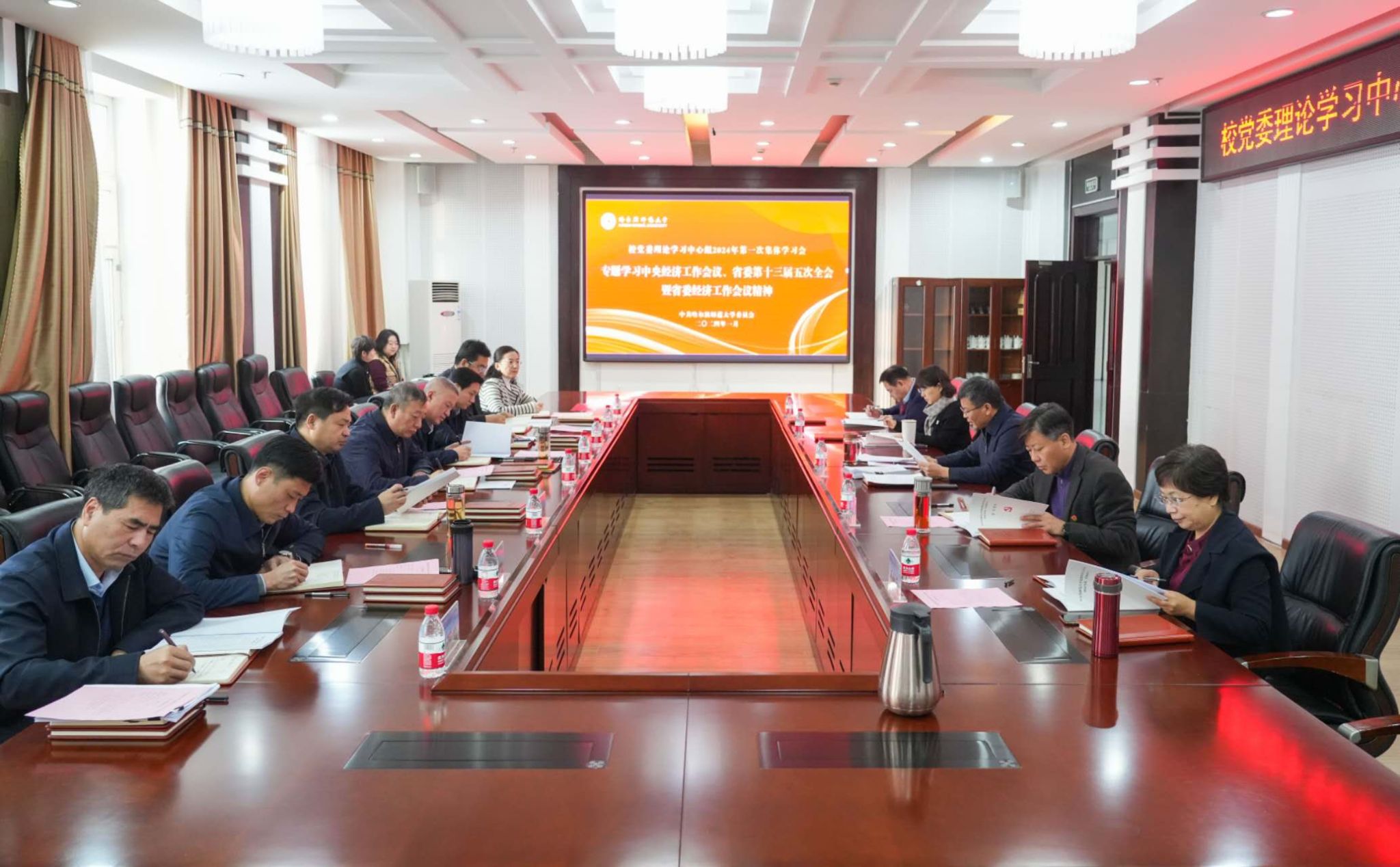 1月5日,校党委理论学习中心组召开2024年第一次集体学习会。学习贯彻落实中央经济工作会议精神,落实省委十三届五次全会暨省委经济工作会议精神。校党委书记孙立军主持会议并讲话,校党委理论学习中心组全体成员参加会议。会上,校党委书记孙立军领学中央经济工作会议精神,中心组成员集体观看了省委十三届五次全会暨省委经济工作会议《新闻联播》视频。校长蒋鲲和党委常委、副校长张喜田分别作交流发言。孙立军对中央、...