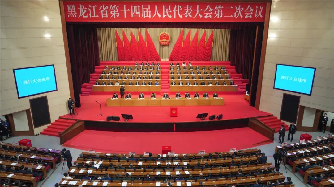 省十四届人大二次会议隆重开幕 许勤主持 梁惠玲作政府工作报告 蓝绍敏黄建盛等出席会议现场 实干铸就伟业,奋斗创造未来。24日上午,黑龙江省第十四届人民代表大会第二次会议在哈尔滨国际会议中心环球剧场隆重开幕。来自全省各条战线、各行各业的人大代表,肩负全省人民的期望与重托,以饱满的政治热情和昂扬的精神状态出席大会,认真履行宪法和法律赋予的神圣职责,奋力开创高质量发展、可持续振兴新局面。会场气氛庄重热烈,主席台帷幕正中的国徽在鲜艳的红旗映衬下熠熠生辉。...