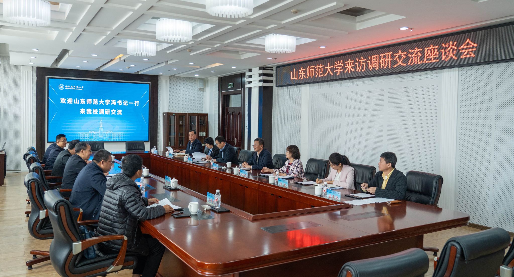 5月13日,山东师范大学党委书记冯继康一行到我校开展调研交流,校党委书记孙立军、校长蒋鲲等领导陪同调研。调研交流座谈会在行知楼915会议室举行,孙立军出席会议并致辞。党委办公室、科研处、马克思主义学院、化学化工学院、美术学院相关负责同志参加座谈会。座谈会由党委副书记李庆霞主持。座谈会上,孙立军代表学校对冯继康一行的到来表示热烈欢迎,并详细介绍了学校办学目标定位、“三步走”发展战略和“七位一体”...