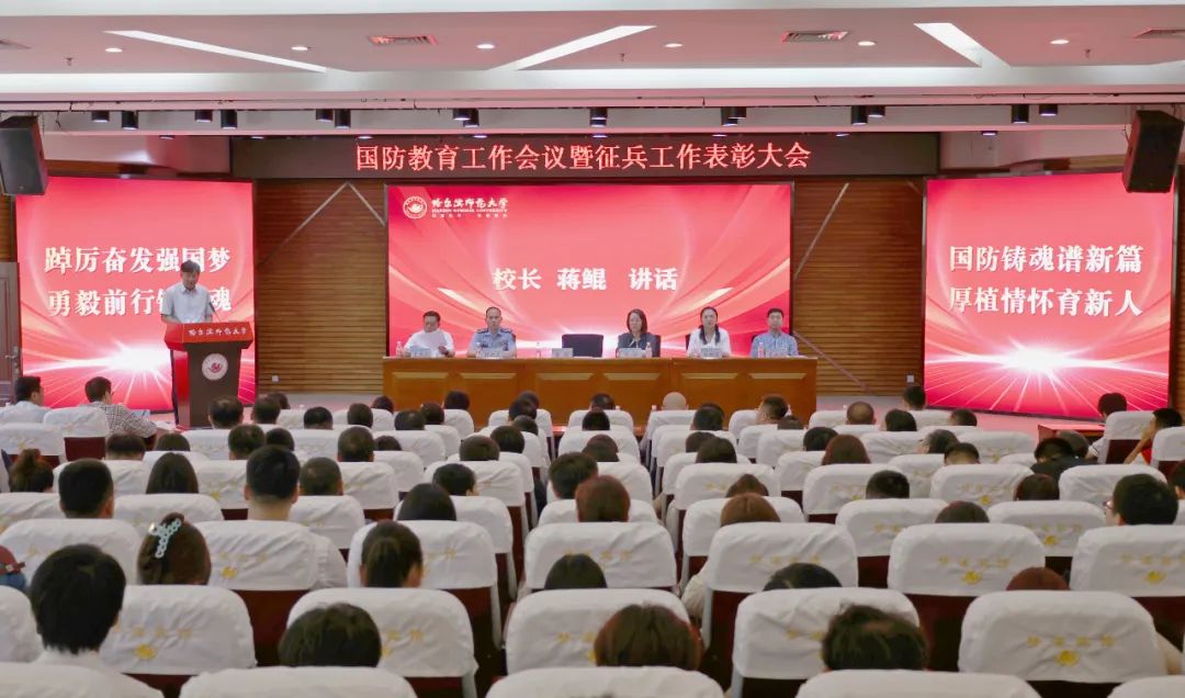 为深入贯彻落实习近平强军思想,践行总体国家安全观,对学校近三年来的国防教育工作进行全面梳理和总结,表彰在国防教育工作中表现突出的集体和个人,6月28日下午,我校在梦溪宾馆二楼会议室召开国防教育工作会议暨征兵工作表彰大会。校长蒋鲲出席会议并讲话。校党委副书记、工会主席郭砾,哈尔滨市南岗区人武部上校部长张九灵,校党委常委、宣传部(教师工作部)部长张艳君,以及学校征兵工作领导小组成员单位负责人,...