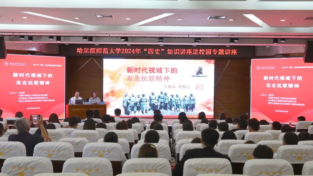 6月25日下午,校工会联合党委宣传部(教师工作部)在我校松北校区梦溪宾馆二楼报告厅成功举办“四史”知识进校园专题讲座。校党委副书记、工会主席郭砾,党委常委、宣传部(教师工作部)部长张艳君,工会常务副主席杨世君,校工会、党委宣传部(教师工作部)全体干部,各基层工会委员会全体委员,全体辅导员,各学院教职工代表,党外人士代表,青马工程学员代表、历史文化学院等学院学生代表等三百余人参加会议,讲座由郭砾主持。