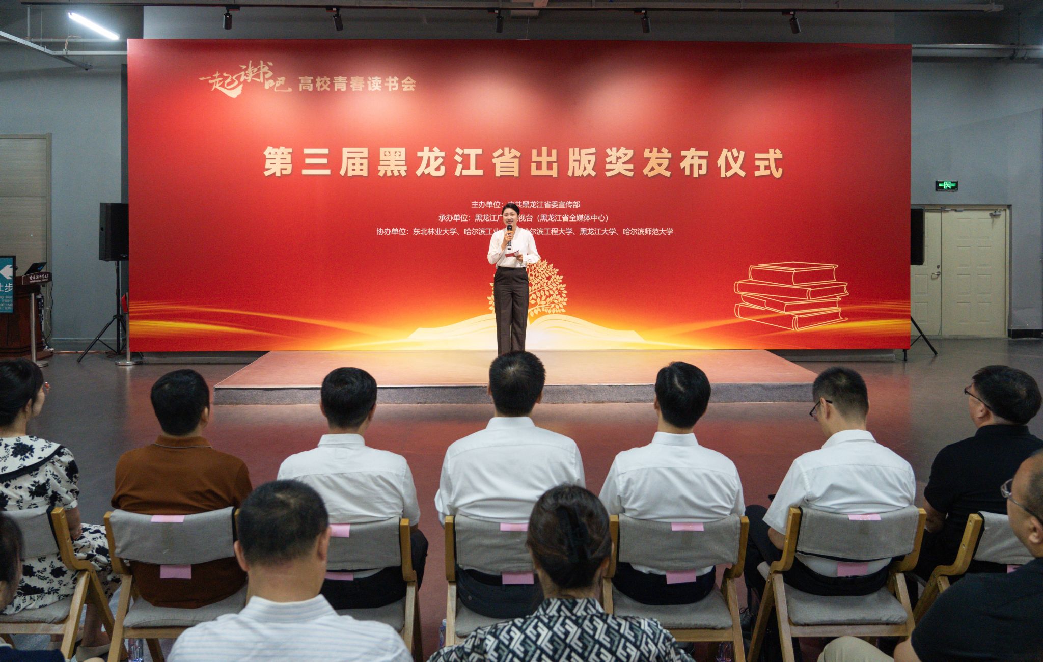 7月2日上午,“一起读书吧”——高校青春读书会暨第三届黑龙江省出版奖发布仪式第四场活动在我校美术馆举行。本次活动由中共黑龙江省委宣传部主办,黑龙江广播电视台(黑龙江省全媒体中心)承办,哈尔滨师范大学等高校协办。校党委副书记王辉、省委宣传部出版处处长王春辉、校学术理论研究部主任孙树勇、省委宣传部出版处副处长黄芳桂、黑龙江广播电视台高校广播总监周洁,我校美术学院等相关单位负责同志及学术理论研究部全体同志参加颁奖仪式。...