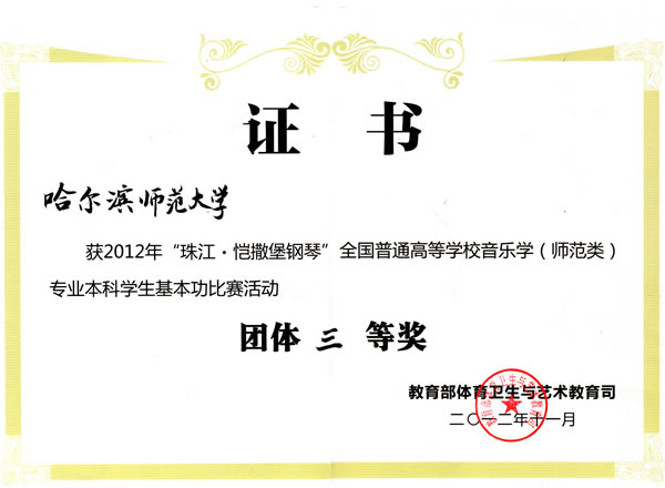 由教育部主办,杭州师范大学和广州珠江钢琴集团股份有限公司承办,教育部艺术教育委员会、中国艺术教育促进会协办的2012年“珠江•凯撒堡钢琴”全国普通高等学校音乐学(师范类)专业本科学生基本功比赛在杭州师范大...
