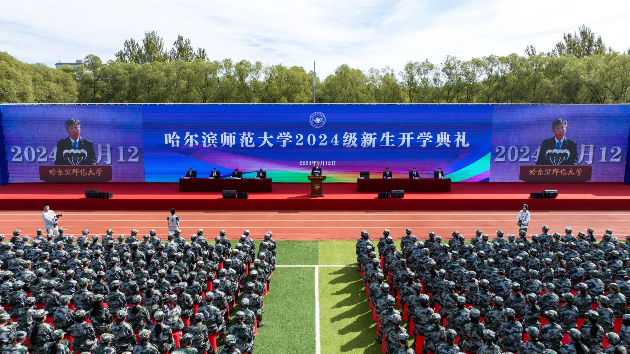 秋光为序 筑梦启航新学肇始 万象更新2024年9月12日上午松北校区体育场隆重举行哈尔滨师范大学2024级新生开学典礼10025名2024级新同学承载着殷切期望怀揣着青春梦想从祖国各地奔赴而来少年逐梦凌云志策马扬鞭正当时踵事增华向未来 学校党政领导,相关部门主要负责人,各学院书记、院长,副书记,新生辅导员和全体新生参加典礼。党委常委、副校长尹剑锋主持典礼。伴随着九点钟初升的太阳庄严肃穆的升旗仪式在田径场举行国旗护卫队整齐昂扬、...
