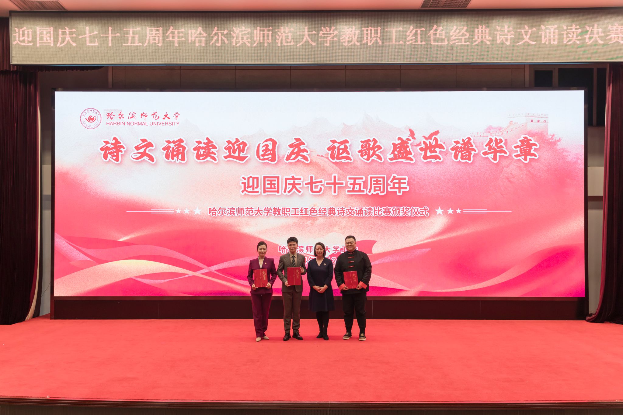 七十五载栉风沐雨,七十五载春华秋实。在全国上下喜迎新中国成立75周年之际,9月26日,由校工会与传媒学院携手举办的以“诗文诵读迎国庆,讴歌盛世谱华章”为主题的迎国庆七十五周年哈师大教职工红色经典诗文诵读比赛在我校松北校区科学会堂圆满落下帷幕。校党委副书记、工会主席郭砾,党委常委、宣传部(党委教师工作部)部长张艳君,600余名师生代表现场观看诗文诵读决赛并参加颁奖仪式。决赛由传媒学院教师尹航主持。...