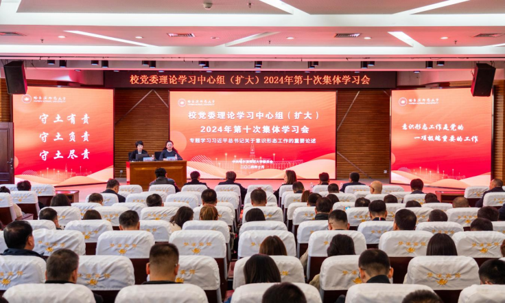 10月15日,我校召开党委理论学习中心组(扩大)2024年第十次集体学习会,深入学习领会习近平总书记关于意识形态工作重要论述。中共黑龙江省委党校(黑龙江省行政学院)名师、二级教授,学科带头人高原丽受邀作专题辅导报告。校党委理论学习中心组成员参加会议,各基层党委负责人、各学院党委副书记、全体辅导员、2024年新入职教职工列席会议,校党委常委、宣传部(党委教师工作部)部长张艳君主持会议。高原丽紧密结合习近平总书记关于意识形态工作的重要论述,...