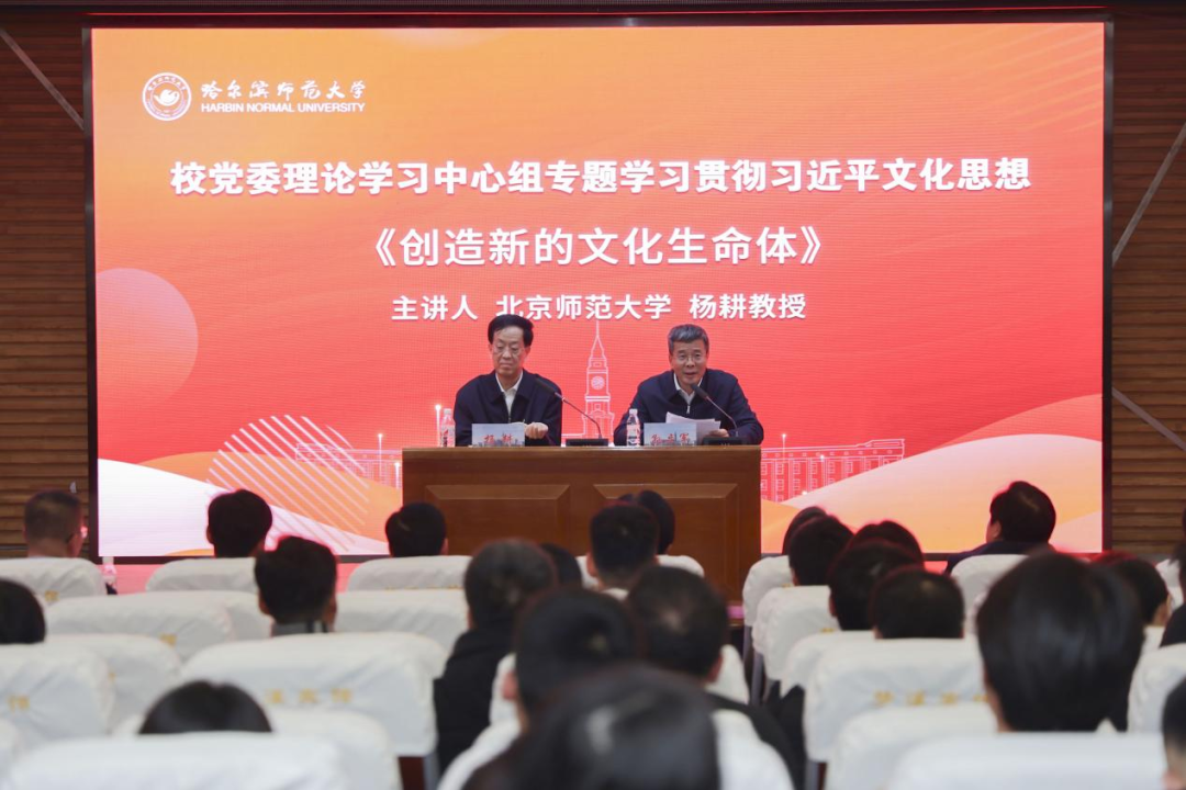 学校召开党委理论学习中心组2024年第十二次集体(扩大)学习会,专题学习习近平文化思想。北京师范大学杨耕教授应邀作题为《创造新的文化生命体》的专题辅导报告。校党委书记孙立军主持会议并讲话,校党委理论学习中心组全体成员参加会议。全校正处级干部,马克思主义学院、文学院、历史文化学院师生代表,全体辅导员列席会议。杨耕教授围绕文化的本质和作用、如何造就新的文化生命体两个方面进行深刻阐述。杨耕指出,...