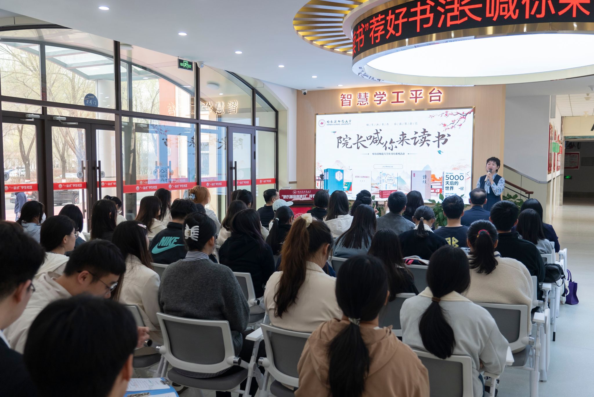 春深日暖,书香氤氲。在第三十个“世界读书日”到来之际,哈尔滨师范大学以一场别开生面的“院长喊你来读书”荐书活动,正式拉开2025年读书月序幕。学校党委副书记、工会主席郭砾,文学院院长侯敏,马克思主义学院院长刘爱军,经济与管理学院院长徐光,斯拉夫语学院院长赵秋野在我校一站式学生社区与60余名学子共聚一堂,在经典与思想的碰撞中,开启了一场跨越学科、融通古今的阅读盛宴。党委常委、宣传部(党委教师工作部)部长张艳君,...