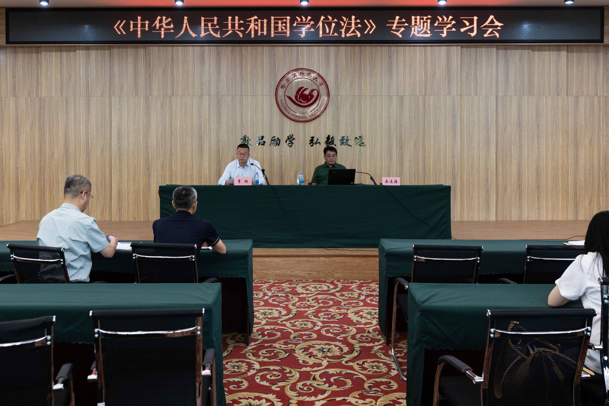 为贯彻落实《中华人民共和国学位法》,全面推进依法治校工作,准确把握《中华人民共和国学位法》内涵和要求,进一步规范学位授予管理,保障学位授予质量,6月13日,我校组织开展哈尔滨师范大学业务大讲堂第25期—《中华人民共和国学位法》专题学习会,党委常委、副校长李林出席并主持会议,研究生学院全体教职工、各培养单位负责研究生工作的主管领导、研究生秘书、研究生辅导员及研究生导师代表参加会议。会议邀请国家教育行政学院副研究员石连海老师作专题辅导,石老师从立法背景、章节解读、实践应用三个部分进...