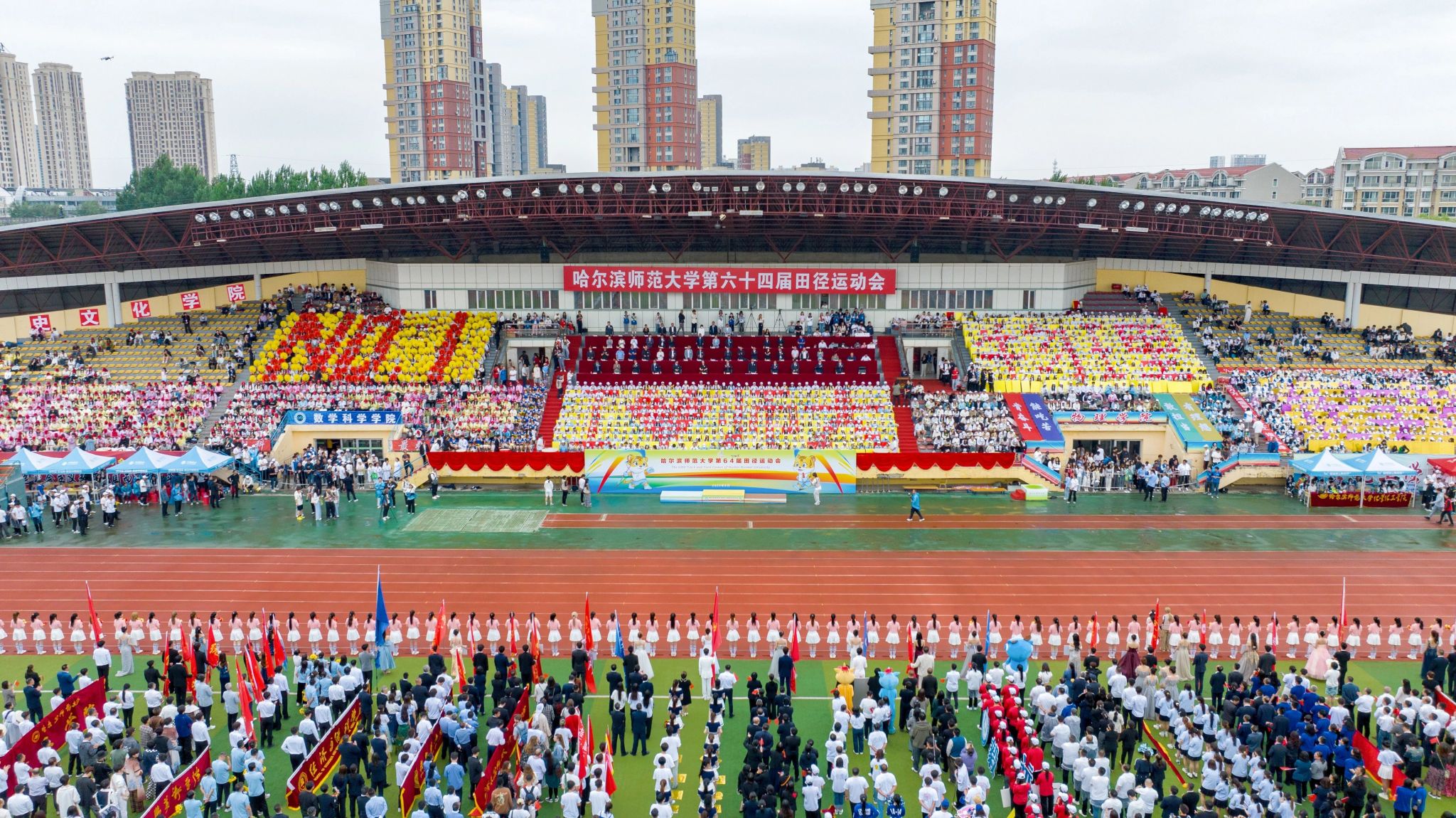 燃动青春,筑梦未来。6月13日上午,我校第六十四届田径运动会于主校区体育场盛大开幕!校党委书记孙立军、校长蒋鲲等学校党政领导出席开幕式。开幕式由党委常委、副校长李岗主持。开幕式现场党委书记孙立军宣布运动会开幕校长蒋鲲致开幕词党委常委、副校长李岗主持开幕式开幕式现场伴随着雄壮激昂的《运动员进行曲》,包括前导队、裁判员队伍、各学院师生代表队在内的27个检阅队伍依次走过主席台,接受大会检阅。检阅人员方阵整齐,...