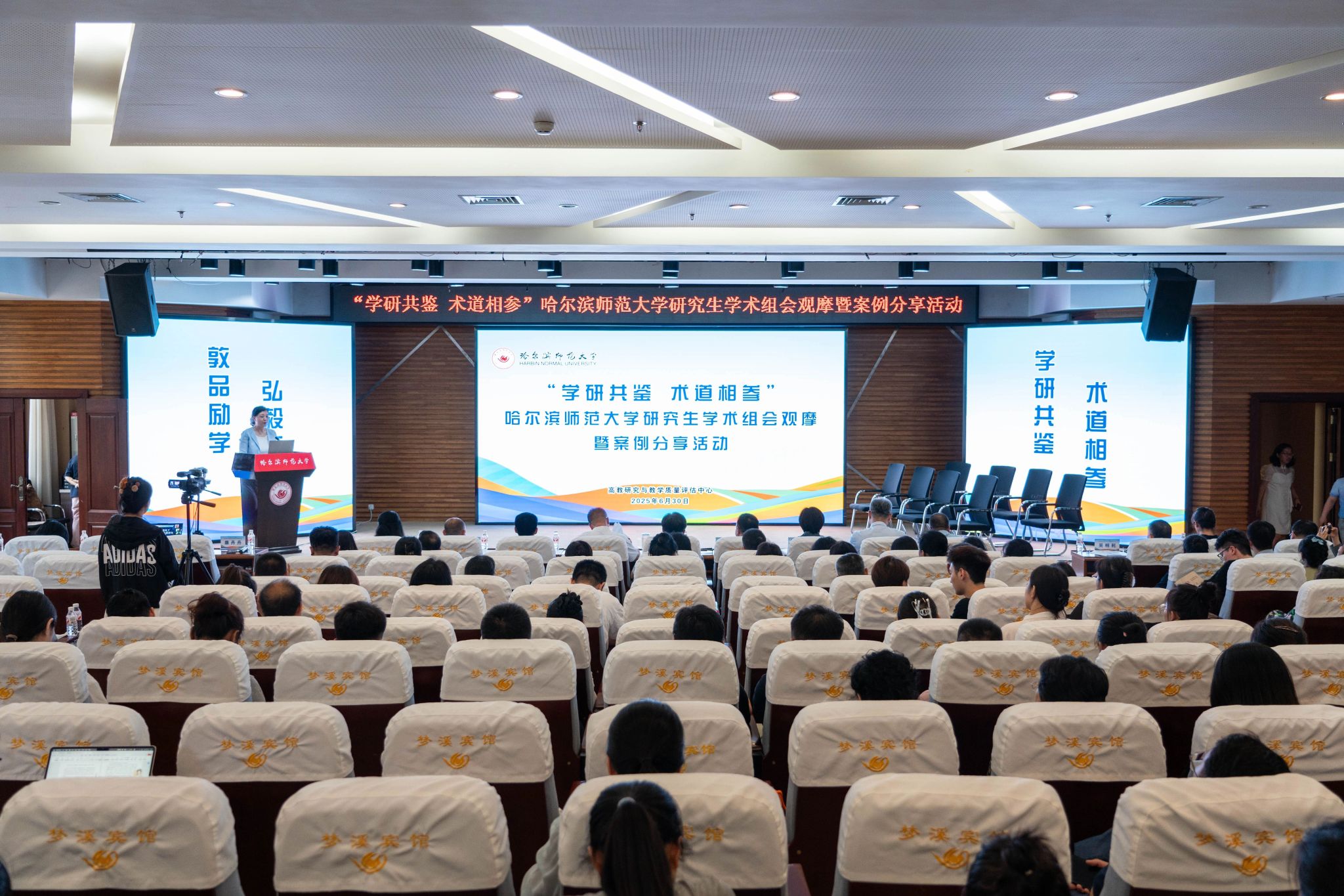 6月30日下午,我校在梦溪宾馆二楼会议室举办“学研共鉴,术道相参”研究生学术组会观摩暨案例分享活动。校长蒋鲲,党委常委、副校长李林参加活动并讲话。研究生学院相关负责人,研究生培养单位相关负责人,导师代表,组会观摩示范团队,组会案例集作者等参加活动。活动由高教研究与教学质量评估中心主任康丹丹主持。蒋鲲在讲话中指出,要建立完善的学术组会质量标准,探索跨校、跨学科、跨学段的联合组会模式,建立常态化组会观摩示范工作机制,...