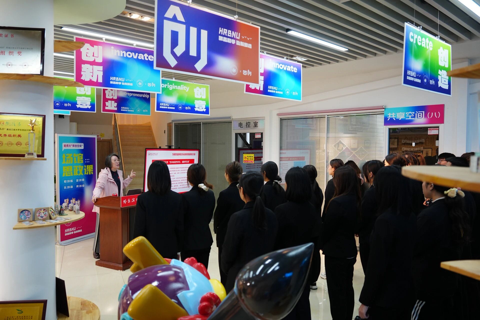 为深入贯彻落实习近平文化思想,进一步推动学校“大思政”体系建设,有效深化“场馆育人”机制,持续推进思专创融合发展,10月15日下午,我校在主校区师创空间举办“坚守中华文化立场,弘扬中华美育精神”场馆思政课。校党委副书记、工会主席郭砾参加活动并授课,东语学院师生代表和学校团委相关同志参加活动。授课过程中,郭砾阐述了习近平文化思想的内涵、提出背景、形成过程、理论创新及实践意义。她指出,习近平文化思想是马克思主义活的灵魂在文化实践中的创造性运用和发展,构成了习近平新时代中国特色社会主...