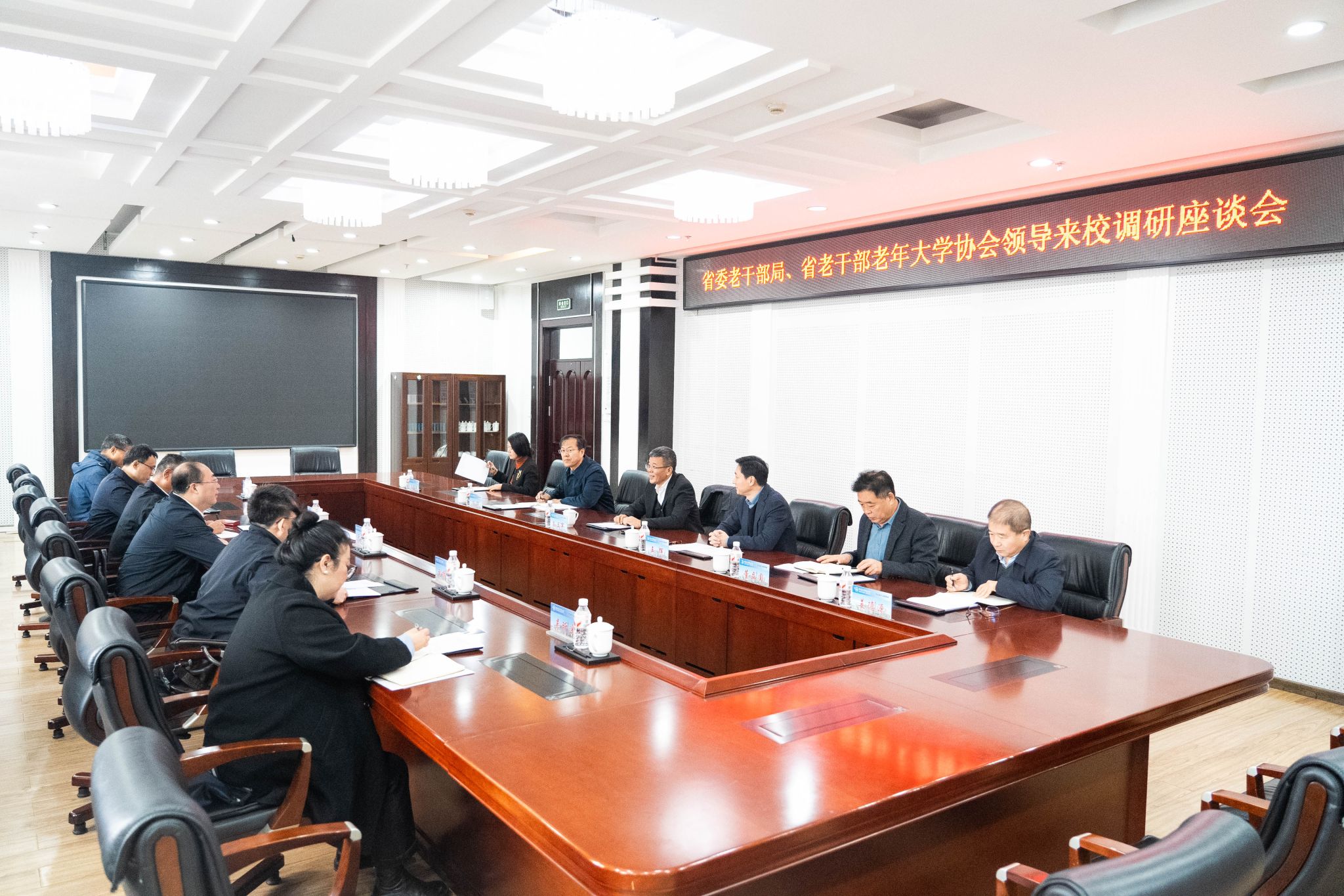 10月14日上午,中国老年大学协会副会长、省委组织部副部长、老干部局局长于志伟,省老干部老年大学协会会长、原省委高校工委副书记申林,哈尔滨老年人大学党组副书记刘振清等一行六人来我校调研。校党委书记孙立军参加会议。会议由校党委副书记王辉主持。孙立军代表学校对调研组的到来表示热烈欢迎,并简要介绍了学校的办学成效。他指出,学校事业发展所取得的显著成绩,得益于老同志们奠定的坚实基础。近年来,学校党委高度重视离退休工作,...