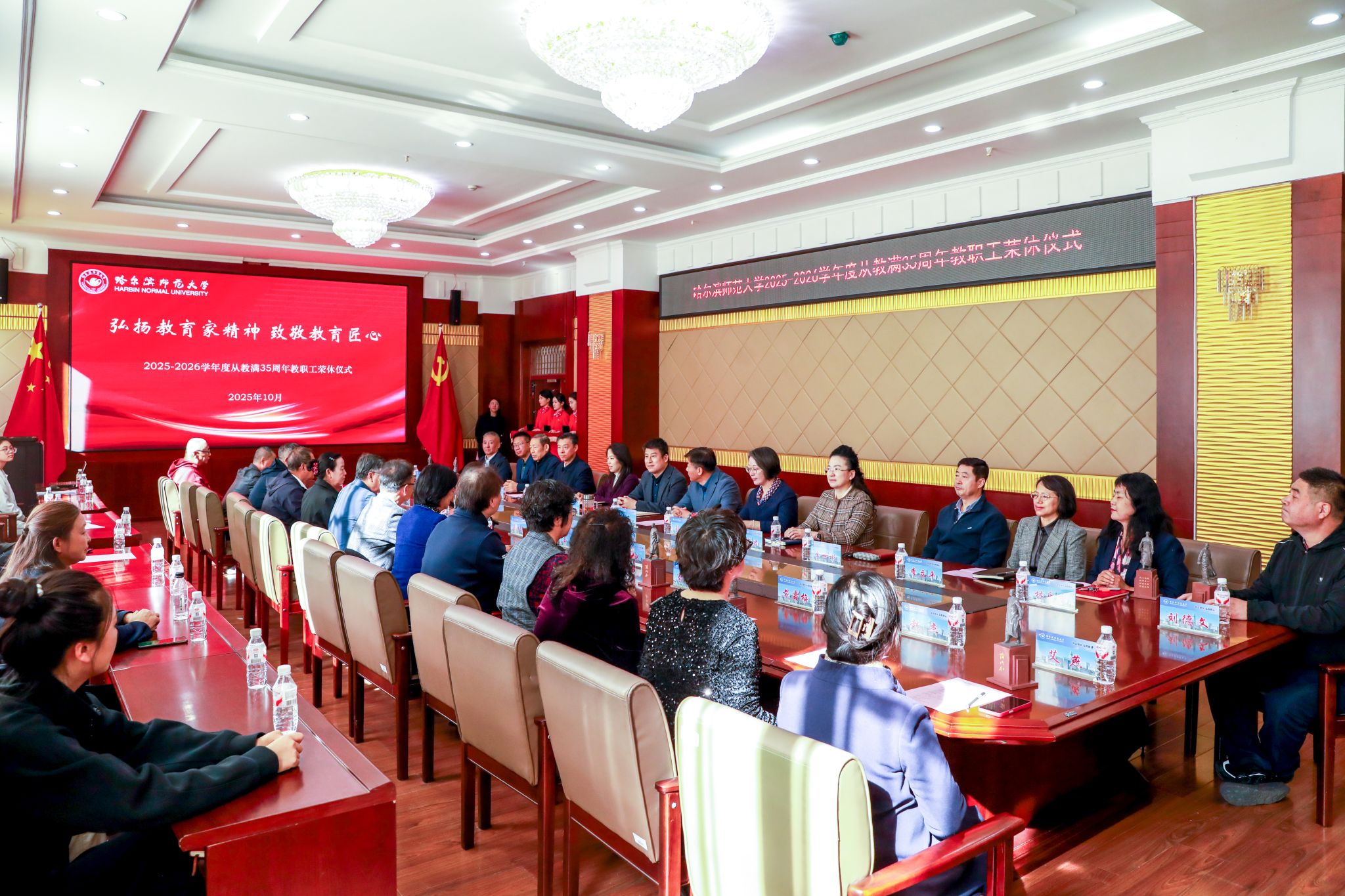 10月10日上午,哈尔滨师范大学2025-2026学年度从教满35周年教职工荣誉退休仪式在主校区举行。本次仪式以“弘扬教育家精神 致敬教育匠心”为主题,校长蒋鲲,党委副书记、工会主席郭砾,党委常委、副校长陈永斌,党委常委、宣传部(党委教师工作部)部长张艳君,党委常委、组织部部长王羽出席仪式,相关单位负责人、工会主席,18位荣休教师代表及30余名新入职教师参会,校工会常务副主席杨世君主持仪式。郭砾代表学校向荣誉退休教职工致以真挚祝福与崇高敬意。...