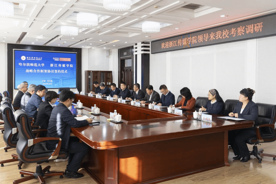 10月16日上午,浙江传媒学院党委书记韦国潭一行到我校调研考察,并签署战略合作框架协议。我校党委书记孙立军,校长蒋鲲,党委常委、副校长陈永斌,党委常委、副校长李林,浙江传媒学院副校长、党委委员姚争出席签约仪式。在调研座谈会上,孙立军代表学校对韦国潭一行的到来表示热烈欢迎,并从历史沿革、学科建设、教学科研、人才队伍及创意设计产业园区建设等方面介绍学校发展情况。孙立军指出,浙江传媒学院是我国传媒领域的知名高校。...