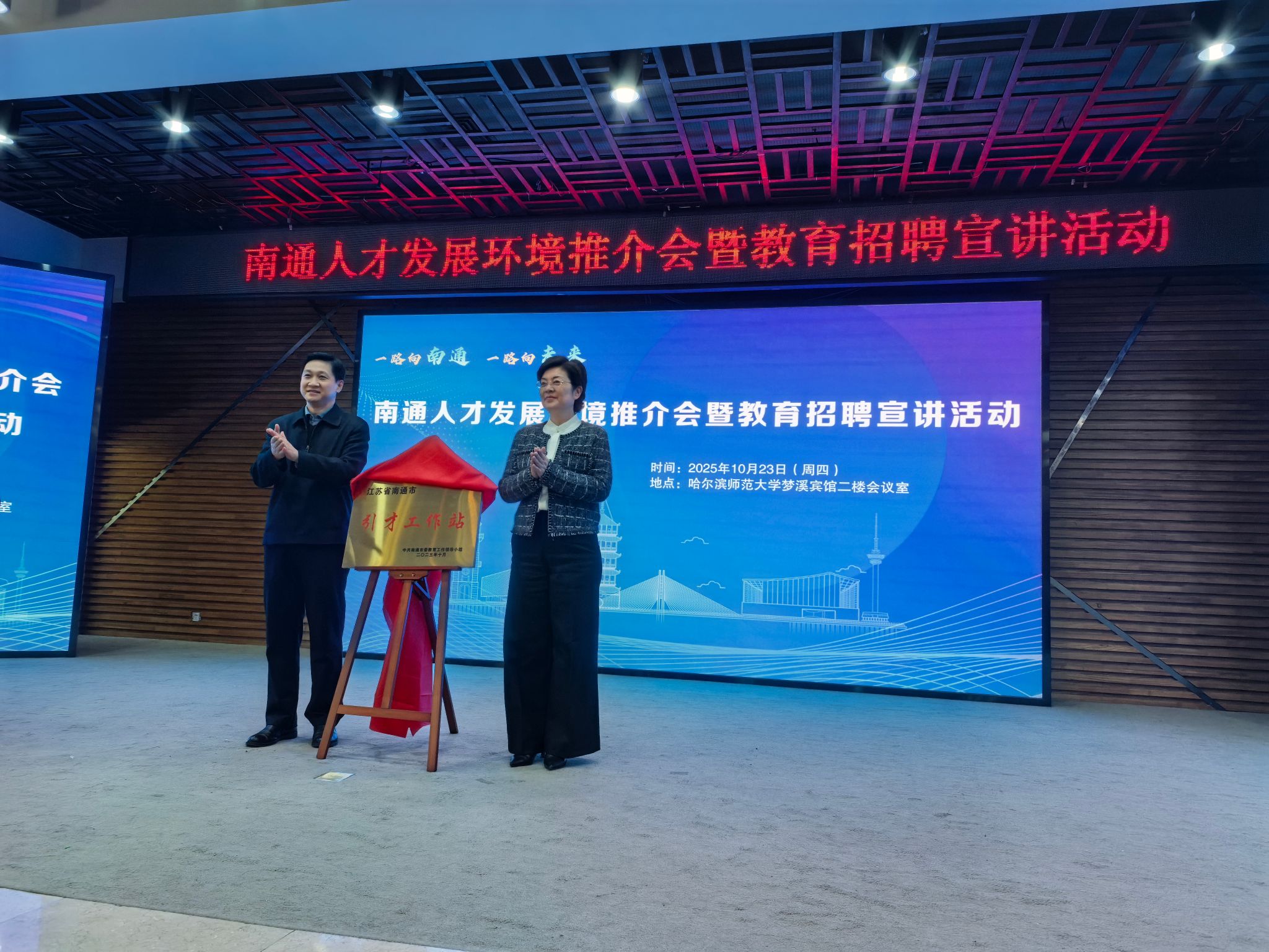 近日,江苏省南通市人才招引宣讲会在梦溪宾馆二楼会议室举行。宣讲会前,校长蒋鲲会见陈冬梅部长一行。校党委副书记王辉,南通市委常委、宣传部长陈冬梅,南通市教育局长孙剑波出席宣讲会。校学生就业指导处、南通市委宣传部、南通市教育局等相关负责同志参会。会见时,蒋鲲对南通市委、市政府在促进哈尔滨师范大学毕业生就业创业方面给予的支持表示感谢,双方就深化校地合作及创新人才培养机制等内容进行了深入交流。宣讲会上,王辉在致辞中指出,南通市是国家首批对外开放的沿海港口城市之一,地理位置优越,经济发展...