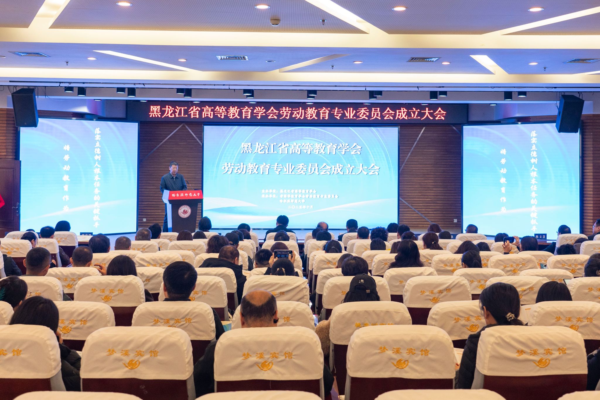10月29日,黑龙江省高等教育学会劳动教育专业委员会成立大会在我校培训中心二楼会议室举行。中国高等教育学会劳动教育专委会副秘书长、中国劳动关系学院劳动教育学院院长曲霞,省教育厅二级巡视员廉世民,省高等教育学会常务副会长丁哲学,校长蒋鲲,校党委副书记、工会主席郭砾参加大会。省内各高等院校分管劳动教育负责同志、劳动教育部门负责同志及各市(地)教育局分管负责同志、基础教育学校和省属中职学校相关老师200余人参加大会。黑龙江省高等教育学会秘书长姜君主持大会。廉世民对专委会的成立表示祝贺...