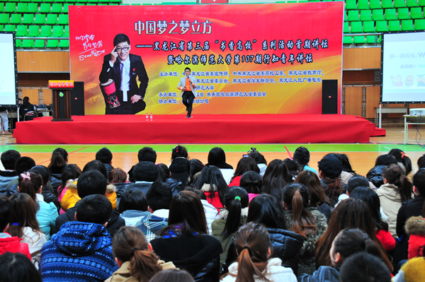 3月23日下午,智立方品牌营销传播集群董事长兼CEO杨石头先生作客“中国梦之梦立方——黑龙江省第三届‘书香高校’系列活动首期讲坛暨哈尔滨师范大学第107期行知青年讲坛”活动现场。