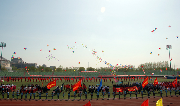 图 后勤系统运动会现场 为加强后勤文化建设,丰富员工业余生活,5月16日上午,由后勤系统联合主办、后勤集团承办的后勤系统第三届田径运动会在我校松北校区田径场如期举行。