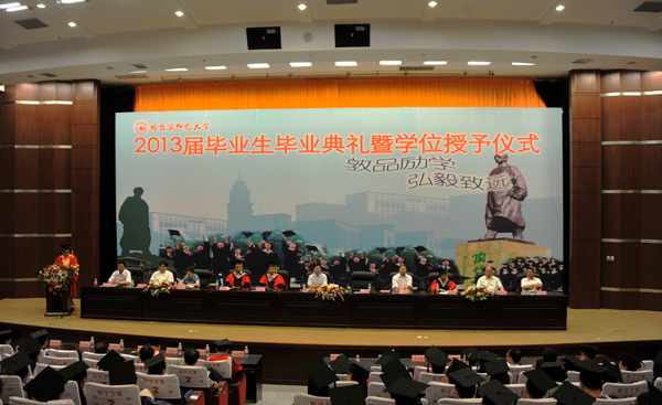 图 毕业典礼暨学位授予仪式现场 6月25日下午,我校在松北校区科学会堂隆重举行2013届毕业生毕业典礼暨学位授予仪式。