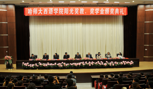 11月2日下午,西语学院在我校松北校区科学会堂举行了哈师大西语学院阳光奖教、奖学金颁奖典礼。