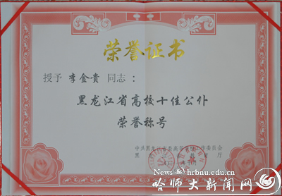 近日,省委高校工委、省教育厅“十佳公仆”评选结果揭晓,我校总会计师李金贵同志获得黑龙江省高校“十佳公仆”荣誉称号。