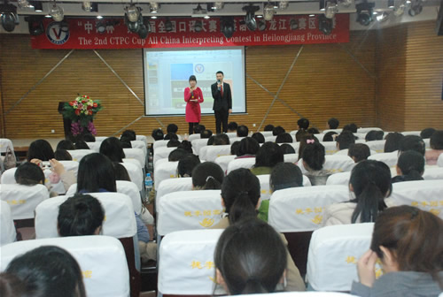 由中国翻译协会主办,《中国翻译》杂志社、黑龙江省翻译协会和我校共同承办的“‘中译杯’第二届全国口译大赛(英语)黑龙江赛区复赛”于3月24日在梦溪宾馆二楼报告厅举行。