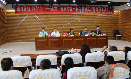 9月13日上午9:00,国培计划(2011)——黑龙江省农村骨干教师置换脱产研修项目开学典礼在我校松北校区梦溪宾馆二楼会议室隆重举行。