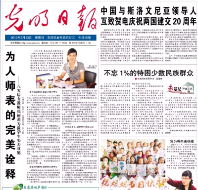 图 《光明日报》5月13日头版截图 5月13日《光明日报》头版头条报道了我校大庆师范学院办学点2007届汉语言文学专业毕业生张丽莉舍己救人的先进事迹(网址http://epaper.gmw.cn/gmrb/html/2012-05/13/nw.D110000gmrb_2...