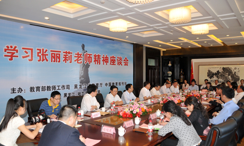图 学习张丽莉老师精神座谈会现场 5月20日下午,由教育部教师工作司、黑龙江省教育厅和中国教育报社主办,我校承办的“学习张丽莉老师精神座谈会”在行知楼举行。