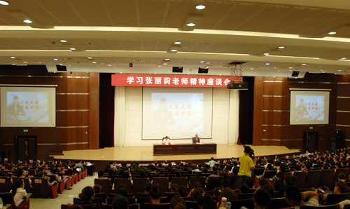 图 座谈会现场 5月23日下午,我校学习张丽莉老师精神座谈会在科学会堂召开。