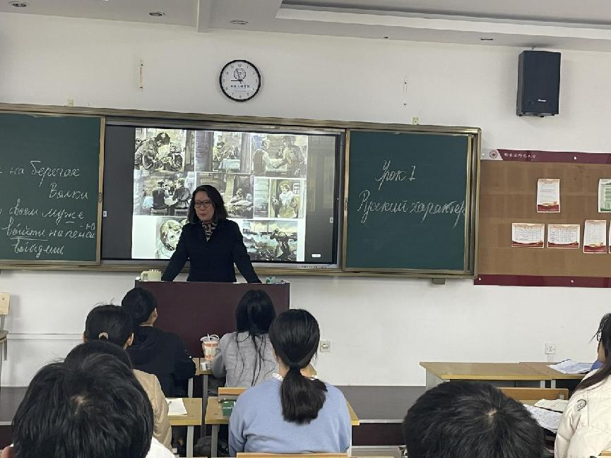 党委副书记、工会主席郭砾带队走进斯拉夫语学院联系班级,并和同学们一同听了王莹莹老师的《基础俄语4》课程,课后与教师及学生进行了交流。郭砾鼓励青年教师要再接再厉,锐意进取,做业务骨干;鼓励同学们要利用好有限的校园时光,做走在时代前列的奋进者、开拓者、奉献者。