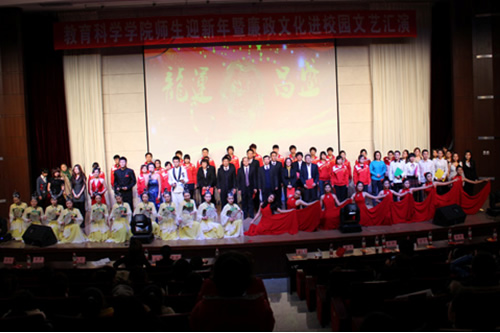 12月23日下午,由教育科学学院主办的“师生迎新年暨廉政文化进校园文艺汇演”在科学会堂隆重举行。校党委副书记王为正、王广明出席会议,学校部分单位的领导、教师观看了演出。