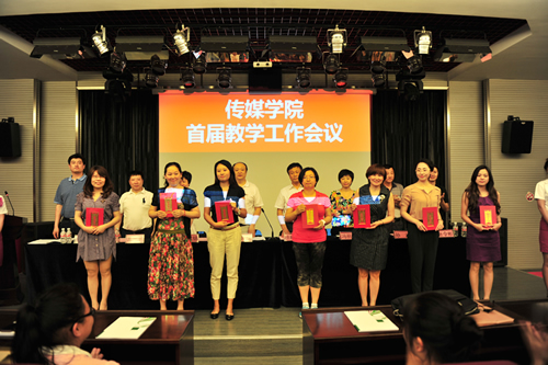 教师代表梁玉清、王晓敏、刘文欣分别从项目教学、人才培养模式创新、教风学风建设、教师内涵等方面做了经验交流。会议对于海礁教师在学校六十周年校庆期间为传媒学院捐赠十万元设备进行了表彰,还对第二届传媒学院青年教师课堂教学大赛的获奖教师颁发了证书。
