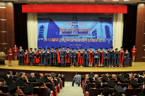 仪式上,党委常委、副校长徐晓风,副校长臧淑英分别宣布了2012届本、专科毕业生名单和博士、硕士研究生名单;王为正宣布了获得黑龙江省2012届优秀毕业生名单。伴随着欢快而喜庆的乐曲,学校领导为获得学位的毕业生授予学位,为获得奖励的毕业生颁发荣誉证书,全场报以热烈的掌声。