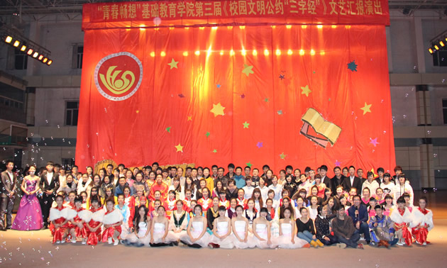 为展现《校园文明公约“三字经”》的学习成果,给大学生们展现自我畅想青春的平台,基础教育学院在党的十八大召开之际于11月27日晚在学院体育馆举办了《校园文明公约“三字经”》原创文艺汇报演出。校党委常委、纪委书记蒋晶洁和机关党委、团委、党委宣传部以及学院党政领导和各相关专业辅导员老师出席了本次活动。
