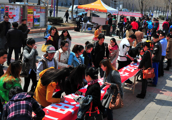 4月22日中午,我校研究生学院举办了为雅安地震受灾同胞签名倡议活动。学校党委副书记王为正、副校长臧淑英和学校相关部处同志、研究生学院全体工作人员以及广大研究生参加了签名祈福活动。