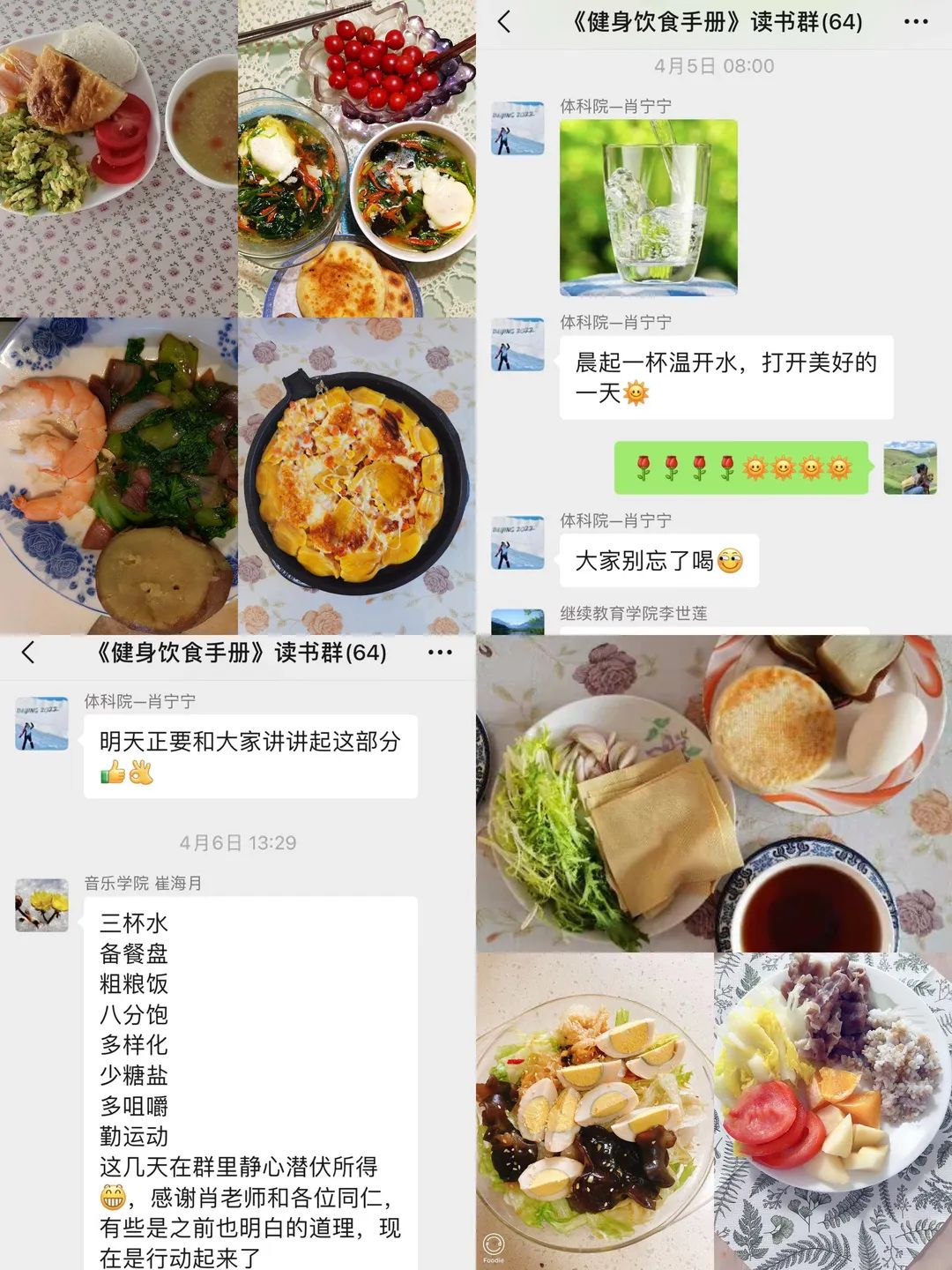 随着社会的发展,大家的饮食观念从“怎样吃的饱”转变为“如何吃的好”。在领读《健身饮食手册》过程中,肖宁宁老师通过分享实用健身、饮食APP等方式分析健身与膳食结构关系,为大家提供更科学合理的膳食结构建议和借鉴。老师们纷纷亮出自己的健康餐食,互相提出意见,探讨健身频率,学理论勤实践,注重生活品质,工作学习之余让生活丰富多彩。
