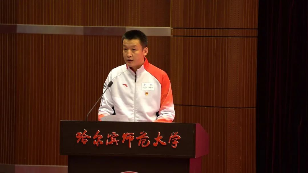 图 校“青年五四奖章”获奖集体冬奥会裁判团队代表邓雪峰进行事迹分享
