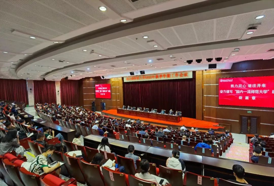 会上,孙立军以《戮力同心 继往开来 奋力谱写“国内一流师范大学”建设新篇章》为题作讲话, 从9个方面简要回顾学校2022年上半年取得的工作成效,从3个方面分析当前我校发展面临的新形势、新机遇,从11个方面对学校2022年下半年重点工作进行部署,从3个方面对下半年工作提出要求。