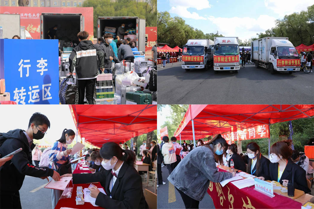 新生报到期间,学校分别在哈尔滨火车站、哈尔滨西站、哈尔滨北站设立接待处,安排迎新客车,接送前来报到的学生和家长。学校在江北校区社科楼前和江南校区艺术大厦楼前,为家庭经济困难新生开设“绿色通道”,并提供“国家助学贷款”“国家奖学金”“国家助学金”等咨询服务。学校组织千余名学生志愿者参与迎新工作,负责接站及引导学生测温、验码、核酸检测等工作,人性化服务中彰显志愿精神。按照疫情防控要求,学校安排数十辆经过严格消杀的行李转运专用车运送行李包裹,为新生提供“从入校门到住进公寓”的全程引导服务,同时为学生家长设置了家长入校缓冲区,组织家长乘车观光校园,让新生和家长充分感受学校的热情与温暖。