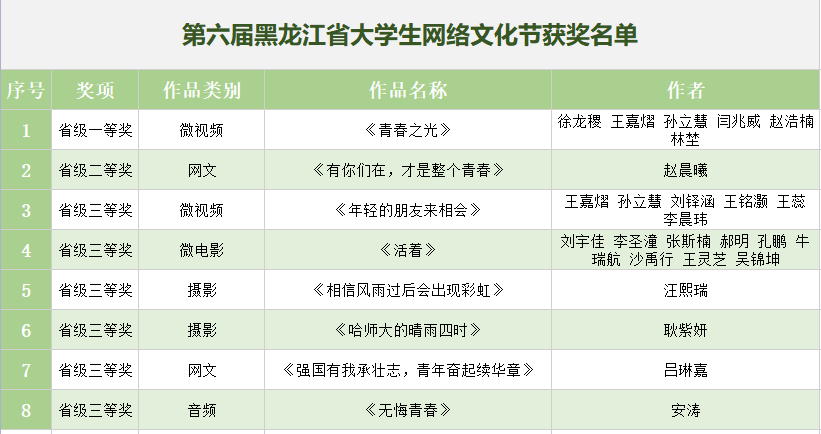 (赵鹤/文)近日,第六届“全省大学生网络文化节”和“全省高校网络教育优秀作品推选展示活动”评选结果揭晓,我校师生共有19项作品斩获佳绩,其中一等奖3项,二等奖5项,三等奖11项,获奖作品质量、数量再创新高。